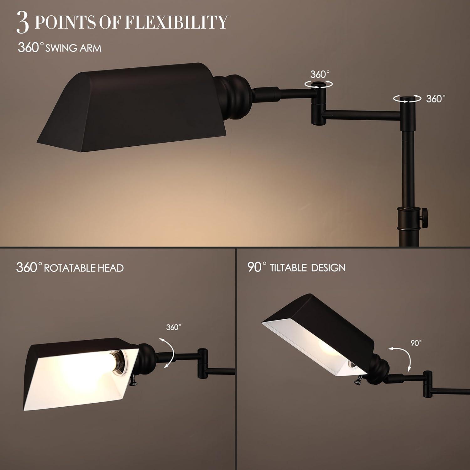 imageOBright Arcadia  Pharmacy Floor Lamp Full Range Dimming Swing Arm Task Lamp with Replaceable Bulb Socket Adjustable Height 47 to 55 360 Rotatable Shade AllMetal Design BlackBlack