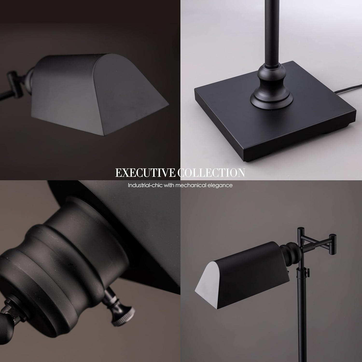 O’Bright Arcadia - Pharmacy Floor Lamp, Full Range Dimming, Swing Arm Task Lamp with Replaceable Bulb Socket, Adjustable Height 47” to 55”, 360° Rotatable Shade, All-Metal Design, Black(Black)